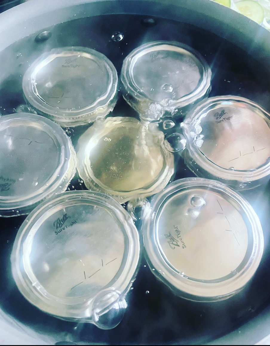 6. Ladle into jars leaving 1/2 inch space. Add the top and the ring, twist just finger tight (not super tight).